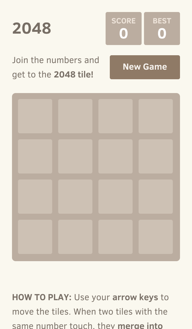 Cum se joaca: Foloseste tastele sageti pentru a muta patratele. Cand 2 patrate cu acelasi numar se ating, ele se unesc in unul singur !